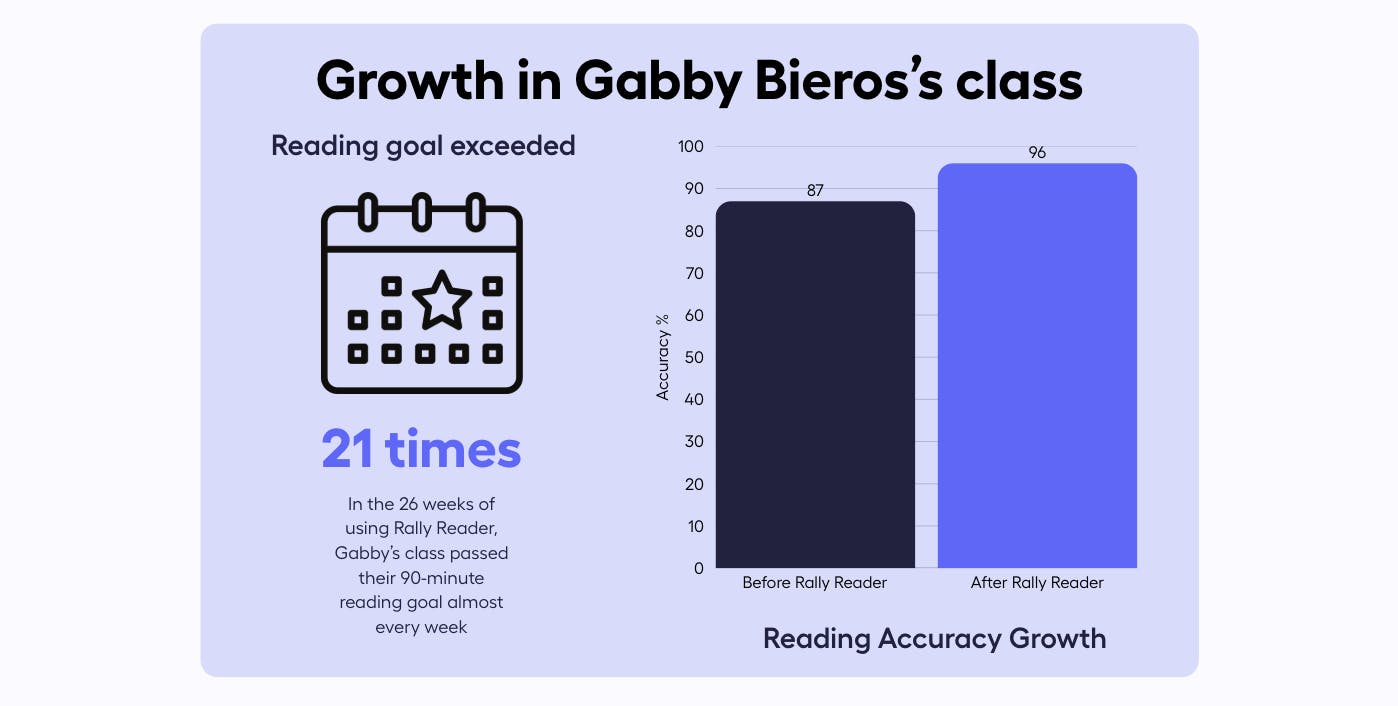 For Gabby Bieros, Rally Reader has been an invaluable tool for student success. “Because they have learning differences [my students] were very hesitant to read out loud, even in small group settings. But now I have parents telling me their kids are coming home excited to read and talking about books that they’re interested in. To me that makes a world of difference. If a student is interested in reading on their own, that means I’m doing my job right."