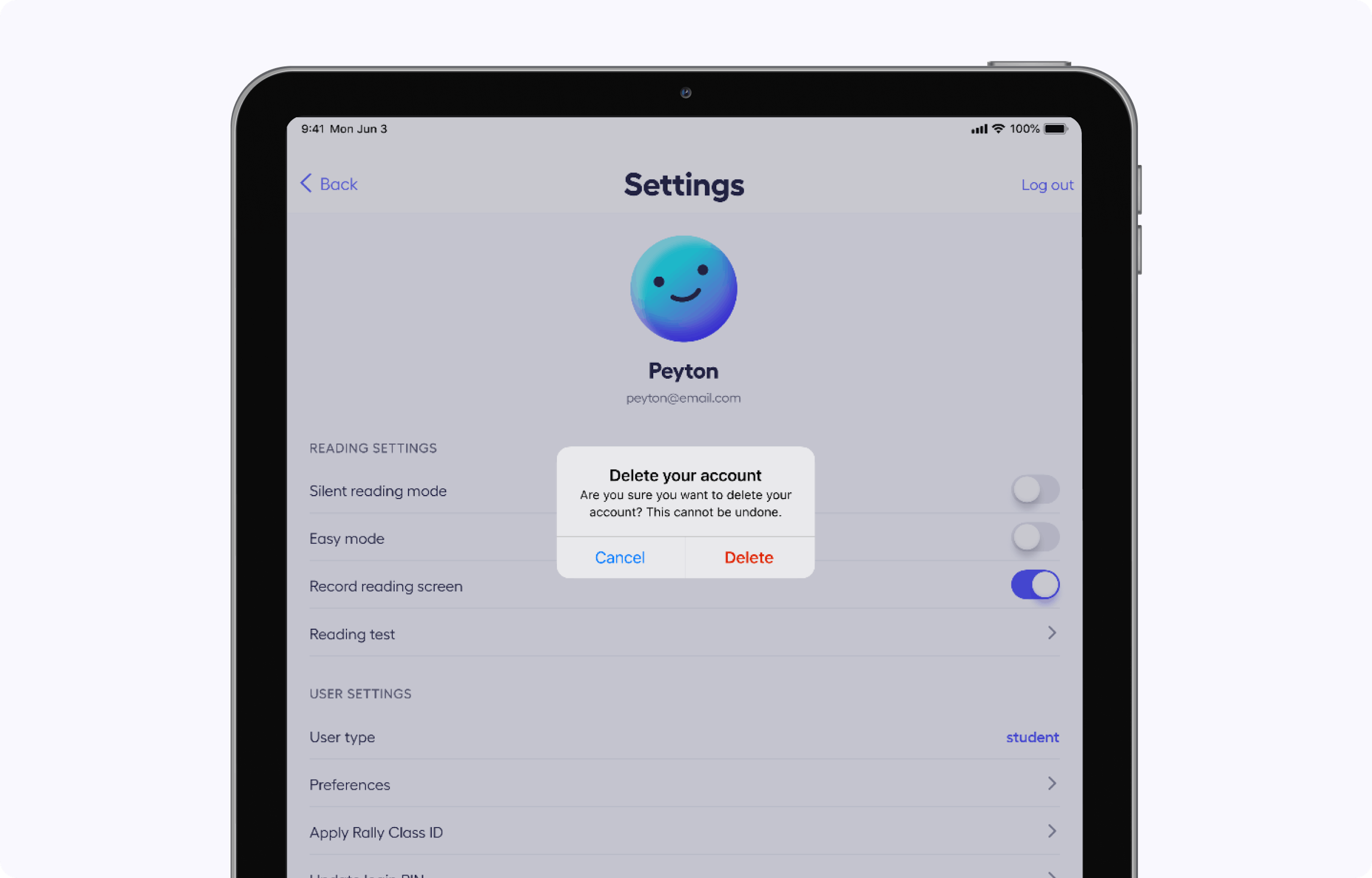 If you'd like to deactivate your Rally Reader account and delete your data from our servers, please reach out to our Customer Success team at customersuccess@rallyreader.com. They'll assist you with the process and answer any questions you may have.