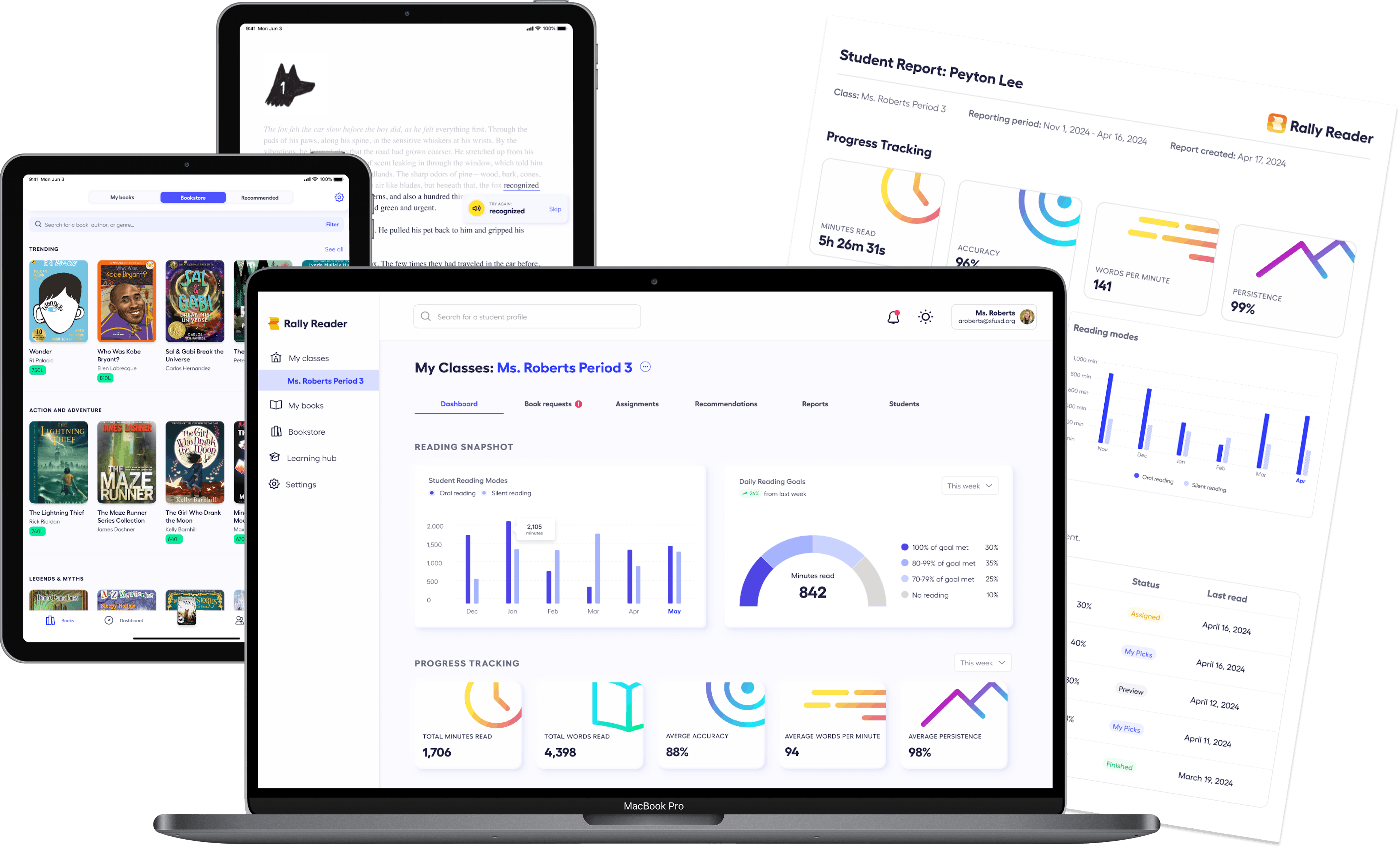 ⭐ A quantified view of every student's reading progress in a robust teacher dashboard